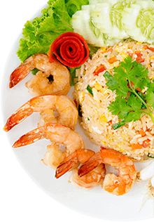 Stir fried king prawn, tender stem broccoli and asparagus with oyster sauce. Deep-fried mince prawn